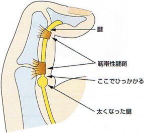 このような症状は、指の腱(けん)が通る部分が、炎症を起こすことにより、発生してきます。