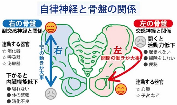 内臓をみても分かるように、体は左右が対称には出来ていません。それは骨盤もしかりです。